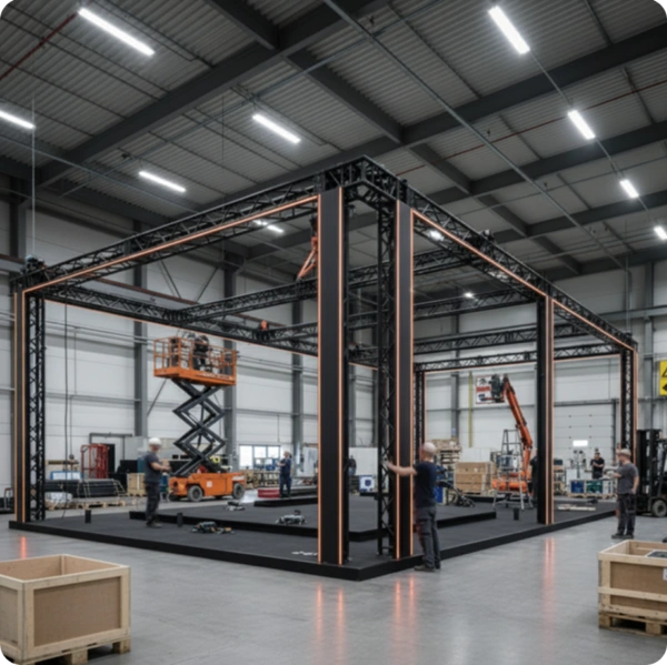 Niezależnie od tego, czy wystawiasz się w Berlinie, Paryżu, Amsterdamie czy Warszawie — dostarczamy Twoje stoisko na czas i montujemy je w zaledwie 1–2 godziny, abyś mógł rozpocząć bez żadnych opóźnień.